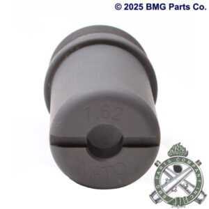 Universal Pintle Adapter, with traverse bar, for use with .50 caliber T&E, Not included. NSN: 1010-01-445-6143. Restored, with new ball detent pin and cable and travel lock option. For use with the MK64 or MK93 Cradle Assemblies. T&E Available. Phosphate finish. Converts large pedestal pintle to a small tripod pintle socket. US GI, Restored Condition.